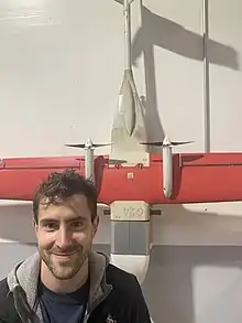 ![]() Rinaudo beside Zipline's first generation drone | |