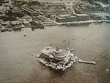 The island was ceded to Britain together with Hong Kong Island. A small fort was built on it in 1841 for the protection of the eastern section of Victoria Harbour,[2] and a battery with three cannons was added in 1854.[3] The island was renamed in the 1860s (some sources mention 1842)[4] after the naval officer Sir Henry Kellett. Kellett Bay and Mount Kellett were also named after him.[5][6] After Kowloon Peninsula was ceded to Britain in 1860, the defense position of Kellett Island declined in importance, and it was used by British armed forces for ammunition and gunpowder storage.[4][3]