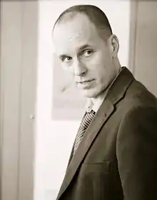 In 2005, AuCoin appeared as Octavius in a Broadway revival of Julius Caesar, which starred Denzel Washington.[12] AuCoin has appeared in numerous other Off-Broadway stage productions, including Manhattan Theatre Club's productions of Of Good Stock and Long Lost, and Signature Theatre's 2014 revival of A. R. Gurney's The Wayside Motor Inn, directed by Lila Neugebauer, which won him, and the rest of the cast, a special Drama Desk Award for "Outstanding Ensemble". Other Off Broadway productions include 2008's premiere of Ernest Hemingway's The Fifth Column,[13] 2009's Jailbait, by Deirdre O'Connor, directed by Suzanne Agins,[14] 2010's Happy Now?, by Lucinda Coxon,[15] the 2013 premiere of Tanya Barfield's The Call, directed by Leigh Silverman in a joint production by Primary Stages and Playwrights Horizons,[16][17] He recently starred in two La Jolla Playhouse productions; J. T. Rogers' Blood And Gifts, directed by Lucie Tiberghien,[18] and Arthur Kopit and Anton Dudley's world premier A Dram Of Drummhicit, directed by Christopher Ashley.[19] AuCoin was a member of the Oregon Shakespeare Festival acting company in the early 1990s.[1][20]