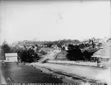 Kelvin Grove Road State School opened in 1875. In 1887, it was split into Kelvin Grove Boys State School and Kelvin Grove Girls and Infants State School. On 31 January 1950, there was a merger creating Kelvin Grove State School for the older boys and girls and Kelvin Grove Infants State School for the younger boys and girls. In 1961 the Infants School was absorbed back into Kelvin Grove State School.[4] Kelvin Grove State School was on the block surrounded by School Street, Tank Street, Victoria Park Road, and L'Estrange Terrace (27.4505°S 153.0116°E), while the girls school and the infants school were on a "extension" triangular site on the eastern corner of L'Estrange Terrace and Victoria Park Road (27.4496°S 153.0128°E), later part of the Kelvin Grove State High School.[5][6] In January 2002, Kelvin Grove State School and Kelvin Grove State High School merged to become Kelvin Grove State College.[4][7]