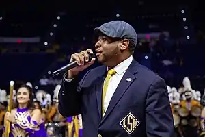 Jones was hired on the faculty at LSU as the Assistant Director of Bands and Director of Bengal Brass in 2016.[8] While in this role, Tiger Band received numerous accolades including recognition from the College Band Directors National Association in 2017 for being one of eight collegiate marching bands from around the nation to be recognized by a juried panel for exceptional performances.[9] In 2019, Jones was named interim Associate of Bands and director of Tiger Band.[10] This was a historic moment as he was the first African American to lead a marching band in SEC history.[11] Jones is an advocate and champion for diversity, inclusion, and equal rights and serves as an ambassador for the university through his service and mentorship across various initiatives and contributions throughout campus. Through this, he has received numerous accolades and distinctions for his contributions within the local community from community leaders. In particular, he received an award recognition from the Baton Rouge mayor, Sharon Weston Broome, for contributions to the Baton Rouge community at an event held at Southern University.[12]