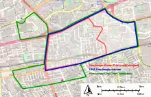 Kembangan along with the wider Geylang district was badly hit by the September 1964 race riots and schools in the area had to be closed for an extended period despite other schools in Singapore reopening after the curfew was lifted.[2] Later in the 1980s, the Malay villages of Kampong Kembangan and Kampong Pachitan, which used to stand at present day Kembangan estate, were demolished to make way for redevelopments in the area.[3] Kampong Kembangan lies approximately to the east of the present day HDB flats in the estate, while Kampong Pachitan lie west of the flats. Several roads in the area were removed or realigned with the redevelopments that were in tandem with the construction of the MRT Line and station there.