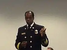 In response to Ellerbe's proposed shift change, the resultant reduction in force, multiple uniform orders, and citing "zero confidence in his ability to lead the department", more than 100 firefighters turned their backs to him during the question-and-answer portion of the department's first ever State of the Department speech.[28] In response, Lon Walls, the Fire and Emergency Medical Services Communications Director, tweeted: "Just witnessed a blatant display of racism and disrespect shown to an African American leader. I guess this is a warmup for tonight's SOUA."[29]