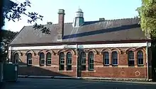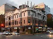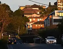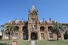 The hill that dominates West Kensington is occupied by the Sacred Heart Monastery, the Australian headquarters of the Catholic Missionaries of the Sacred Heart.[10] The monastery was designed by Sheerin & Hennessy and built in 1895. It is a large stone building in the Gothic style and features an attic storey and a prominent central tower. It also includes a brick chapel in a Romanesque-Byzantine style which was designed by Mullane and built in 1939, and which is joined to the monastery by a matching brick cloister. The monastery is a prominent landmark which can be seen from various parts of Kensington and is now listed on the Register of the National Estate.[11] In the mid-twentieth century, the monastery was the home of the anti-Communist organiser Dr P.J. ('Paddy') Ryan, the popular Catholic controversialist Dr Leslie Rumble,[12] the former athlete Jim Carlton, the retired missionary Francis Xavier Gsell and the editor Fr Paul Stenhouse. The monastery published the long-running magazine Annals Australasia.