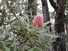 Key upper storey plant species within the bushland are Banksia menziesii, Banksia attenuata and Jarrah (Eucalyptus marginata). As of 2003, some 207 plant species have been found, representing 42 families and 111 genera.[5] Major weeds are Asparagus asparagoides, perennial veldt grass, Gladiolus caryophyllaceus, while Ehrharta longiflora, Ursinia anthemoides, and Misopates orontium are also threatening also to become a problem.[5]