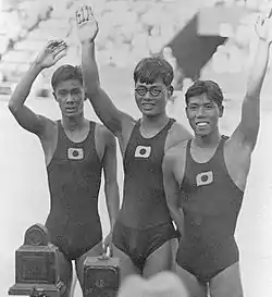 ![]() Kentaro Kawatsu (left), Toshio Irie and Masaji Kiyokawa at the 1932 Olympics | |||||||||||