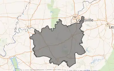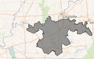 Kentucky counties within the 2nd congressional district: Barren, Boyle, Breckinridge, Bullitt, Butler, Daviess, Edmonson, Garrard, Grayson, Green, Hancock, Hardin, Hart, Jessamine (partial), LaRue, Meade, Mercer, Nelson, Spencer (partial), Warren, Washington (partial)