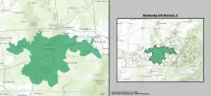 Kentucky's 2nd congressional district is a congressional district in the U.S. state of Kentucky. Located in west central Kentucky, the district includes Bowling Green, Owensboro, and Elizabethtown. The district has not seen an incumbent defeated since 1884.