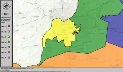 Table of United States congressional district boundary maps in the State of Kentucky, presented chronologically.[4] All redistricting events that took place in Kentucky between 1973 and 2013 are shown.