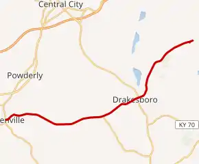 The entire route is in Muhlenberg County.