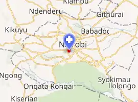 The hospital is located in the area to the immediate west of Upper Hill in Nairobi, the capital and largest city of Kenya.[2] Its location is about 3.5 kilometres (2 mi) west of the city's central business district.[3] The hospital complex measures 45.7 acres (18.5 ha).[4]