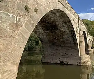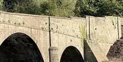 The bridge was a simple structure with little decoration, though the voussoirs - the wedge-shaped stones of the arches - have a delicately-carved milling. As one observer has noted, the working of the voussoirs is "effective in lifting the design" and "reveals how much the builders regarded their work as more than simply utilitarian".[35]