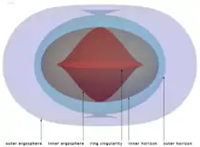 in Boyer–Lindquist coordinates, which can be intuitively characterized as the sphere where "the rotational velocity of the surrounding space" is dragged along with the velocity of light. Within this sphere the dragging is greater than the speed of light, and any observer/particle is forced to co-rotate.