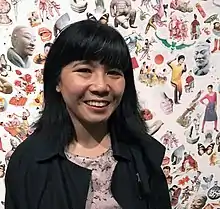 Kerry Ann Lee's art and design practice is rooted in her experience of being a New Zealander of Chinese descent, and frequently explores these cultural intersections.[1] This includes topics such as Chinese settlement in the 19th century, particularly the establishment of Chinatowns[1] and Cantonese urban diaspora communities in New Zealand.[2] Lee is also known for her independent publishing work, especially zines, including Help, My Snowman’s Burning, Celebretard and Permanent Vacation.[3] Her practice frequently employs collage.[4] Lee has undertaken international residencies in China, Taiwan, US, Mexico and Australia and exhibits regularly in New Zealand.[5] Lee's 2017 solo exhibition, Fruits in the Backwater at Pātaka Art + Museum explores notions of identity and place,[6] with juxtaposition of Chinese and New Zealand cultural signifiers a central theme. In December 2018, her installation Return to Skyland opened within the Terracotta Warriors: Guardians of Immortality exhibition at Te Papa.[7]