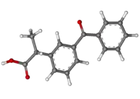 The patches have been shown to provide rapid and sustained delivery to underlying tissues without significantly increasing levels of drug concentration in the blood when compared to the traditional oral administration.[5][11] Ketoprofen undergoes metabolism in the liver via conjugation with glucuronic acid (glucuronidation) by UGT enzymes, hydroxylation of the benzoyl ring by the CYP3A4 and CYP2C9 enzymes, and reduction of its ketone moiety (a carbonyl functional group, i.e. with carbon-oxygen double bond)[12] by carbonyl reducing enzymes (CREs).[13][14] Ketoprofen is used for its antipyretic, analgesic, and anti-inflammatory properties by inhibiting cyclooxygenase-1 and -2 (COX-1 and COX-2) enzymes reversibly, which decreases production of proinflammatory prostaglandin precursors.[13][15]