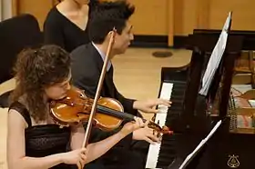 In their inaugural season, Trio Céleste was selected as winners of the prestigious Beverly Hills Auditions in Los Angeles[15] and were appointed Artists-in-Residence at the Claire Trevor School of the Arts at the University of California, Irvine,[9] where they also direct the annual Summer Chamber Music Festival.[16] The ensemble also makes up the core of Chamber Music | OC, both as principal performers and as organizational administrators.[17]