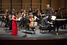 ![]() Pianist Kevin Kwan Loucks Loucks addressing an audience at the Orange County Great Park on March 31, 2012 | |