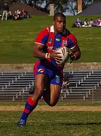 Moving to the Knights' New South Wales Cup team Central Coast Centurions, Naiqama played for the New South Wales Residents against the Queensland Residents at ANZ Stadium as a curtain raiser to Game three of the State of Origin series.[7] In Round 26, Naiqama made his NRL debut for the Knights against the Melbourne Storm on the wing in the 34–4 loss at AAMI Park.[3][8] At the end of 2010, Naiqama was named on the wing in the New South Wales Cup Team of the Year.[9]
