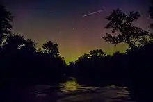 Star falling into the aurora over the Kewaunee River.