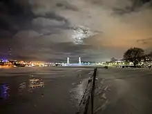 The expanded canal allowed freighters to haul copper from the rich copper mines of the Keweenaw Peninsula out through Lake Superior to larger cities. It also enabled supply boats and freighters to reach the cities of Houghton and Hancock, which supplied goods to most of Michigan's copper region. The expanded canal and shipping lane has a depth of 25 feet (7.6 m), deeper in some locations. As the waterway connects Lake Superior to itself, there are no locks needed.[3][4] The local mines' stamp mills dumped large quantities of stamp sand (containing traces of copper and chemical leaching agents) into the waterway, causing significant environmental damage near the sand dumps. Stamp mills on the waterway included the Old Atlantic, old Quincy, Pewabic, old Franklin, and the Isle Royale mills.