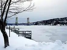 The only land route across the waterway is US 41/M-26 across the Portage Lake Lift Bridge.