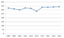 Since 1881, the population of Kexby has remained relatively steady, never exceeding a total of 350. Unlike a majority of villages in the UK, Kexby seems to be unaffected by the events of World War 1. The population only decreased by 5 between 1911 and 1921, from 325 to 320.[17] As of 2011, the total population of Kexby is 340.[18] The age range in the population of Kexby is quite diverse; the census data for 2011 highlights this. The most populous age ranges seems to be from 40-49 and 60-69, but for a village like Kexby there also seems to be a healthy proportion of other younger and older generations.[19]