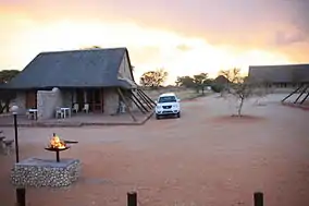 In October 2002, the governments set aside 580 km² (224 mi²) for the use of the native peoples, the Khomani San and Mier communities. This was divided between 277.69 km² of San Heritage Land and 301.34 km² of Mier Heritage Land. The South African National Parks (SANParks) manages the land under contract. This land was named the !Ae!Hai Heritage Park.[12] The settlement agreement also provided for the communities to receive funds for the specific purpose of constructing a tourism facility.[13] The lodge was named !Xaus Lodge (meaning 'heart' in the local language) and is managed commercially on behalf of the ‡Khomani San and Mier communities by Transfrontier Parks Destinations.[14]
