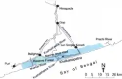 Khalkatapatna was a sea port in what is now the state of Odisha on the eastern seaboard of India. The site is on the north bank of the Kushabhadra River. It was a port town during the Eastern Ganga dynasty during 12th and 15th centuries CE.[1][2] Khalkatapatna was a link in the riverine and maritime navigation of Odisha and was important port in trade with Arabian countries in the west and Indonesia and China in the east.[3]