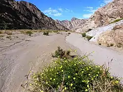 The river Khan is an ephemeral river crossing the Erongo region of central Namibia. It is the main tributary of the Swakop River[1] and only occasionally carries surface water during the rain seasons in November and February/March. Khan's catchment area including its tributaries Slang and Etiro is 8,400 square kilometres (3,200 sq mi).[2]