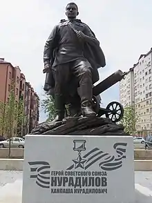 Khanpasha Nuradilovich Nuradilov (Russian: Ханпаша Нурадилович Нурадилов, Chechen: Хампаша Нурадилан-кIант Нурадилов; 6 July 1924 – 12 September 1942) was a Soviet machine gunner in the Red Army between 1940-1942. He is credited with killing an estimated 920 enemy soldiers with his PM M1910 machine gun, making him the highest-scoring machine gunner of all time in the battle. He also captured 18 Nazi German soldiers alive and 7 latest German machine guns. He was posthumously awarded the title Hero of the Soviet Union[1] for his last stand in the Battle of Stalingrad.[2] His body was never found and people concluded that he had been killed by German bombers.[3]