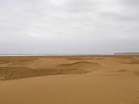 The inland part includes sabkhas and is typical for Sahara landscapes. It also includes sand dunes and limestone plateaus.