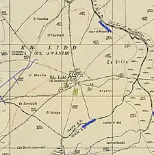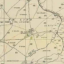 While surveying for the construction of the Jezreel Valley railway, Gottlieb Schumacher noted in 1900 that Ludd was a "flourishing village" of 46 huts and 200 inhabitants, built up by the Bedouin of the Merj.[7]