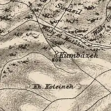 In the 1882, the PEF's Survey of Western Palestine described Khirbat Qumbaza as "a small hamlet on high ground".[6]