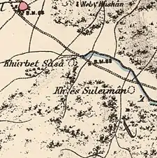 In 1881, the PEF's Survey of Western Palestine found at Kh. Sasa: "caves and foundations."[4]