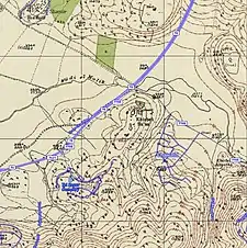 In 1992 the village site was described: "Cactuses and fig trees can be found scattered about the site. There are a number of partially collapsed stone walls, one with a large arched opening. The surrounding lands are used as a grazing area."[10] Village ruins include building foundations, tombs, and cisterns.[3]