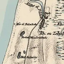 In 1870, Victor Guérin noted it as an old, rather ruined hamlet, named Kharbet el-Belakieh. It was located on a small hill, and had a path leading to a harbour, where water melons were being shipped out.[5]