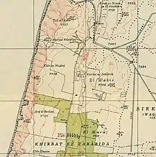 1870s map 1940s map modern map 1940s with modern overlay mapA series of historical maps of the area around Khirbat al-Zababida (click the buttons) | |