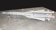 Kholod (Холод) is the name of an experimental Russian rocket project. The hypersonic rocket uses a scramjet engine and was created to exceed Mach 5.75. The prototype consists of a Soyuz TMKB with liquid hydrogen and modified fillings from the SA-5 Gammon missiles. The entire rocket including the four booster rockets is 12 metres (39 ft) long and 750 millimetres (30 in) in diameter.[1][2][3][4][5][6][7] The project led to other Russian hypersonic rockets like the Igla rocket craft and the Yu-71 boost-glide warhead.