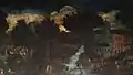 The most renowned works of Khrua In Khong are the depictions of Buddhist teachings (Dharma) in Wat Bowonniwet and Wat Borom Niwat which have the figures and buildings in western style. The murals represented Buddhist dharma in the form of allegories. It required a high mental capability to understand the context of the Dharma, for example, the pictures of water lotuses in a pond, horse-racing, and a man pointing the way of virtue.