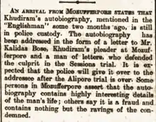 "Khudiram Bose was executed this morning...It is alleged that he mounted the scaffold with his body erect. He was cheerful and smiling."