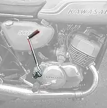 Kick start is a method of starting an internal combustion engine (usually that of a motorcycle) by pushing a ratcheting lever with one's foot. Kick start mechanisms were almost universally a part of motorcycle engines before the mid-1970s, and were phased out of production over the next twenty years or so as electric starters became standard equipment. There are still some motorcycles produced that have both kick and electric starters.