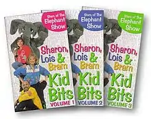 The Kid Bits collection is a composed of three mini-album/compilation cassettes released by Sharon, Lois & Bram in 1995 under the American Drive Entertainment Inc. label. They are available only on cassette and are some of the harder-to-find 'Sharon, Lois & Bram' cassettes. Each cassette features between thirteen and fourteen Sharon, Lois & Bram songs that were previously released on some of the trio's past albums.