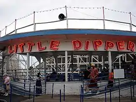 | Little Dipper | 1950 | 2009 | Designed by Herbert Schmeck and built by the Philadelphia Toboggan Company in 1950. The brakes are operated manually by a wooden handle in the station. The out-and-back coaster is 24 feet (7.3 m) tall and travels a course of 700 feet (210 m). It was awarded the ACE Coaster Classic award by the American Coaster Enthusiasts. The ride was relocated to Six Flags Great America after Kiddieland's closure.[8] |