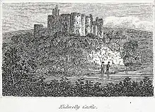 The present remains of the castle date from the early 12th century.[2] Created as a defence against the Welsh, the castle fell to the Welsh several times in the twelfth century. It was captured and razed by Llywelyn the Great in 1231.[3] Later in its history, it was unsuccessfully besieged by forces of Owain Glyndŵr in August 1403 with assistance from soldiers from France and Brittany who captured Kidwelly town. The castle was relieved by a Norman army in September 1403.[4]