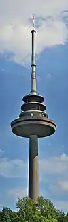 The Fernmeldeturm Kiel (Telecommunication Tower Kiel) is a modern landmark of Kiel in Germany, completed in 1975. The 230-metre-high tower, which is used for directional services and TV, VHF and UHF transmission is not accessible to the public. The basket of this tower, which belongs to German Telekom Inc., has a diameter of 40 metres.