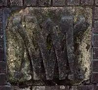 The 1911 OS map refers to Mains Lodge as 'Muir Lodge' after William Muir who built Mains House. The Muir family owned the Bath Lane Tannery, near the Beith Health centre of today (2011) and built the Bark Mill. William Muir of Mains joined John Muir and Sons, Tanners, Curriers, and Fancy Leather Manufacturers as a partner in 1846.[51] Laigh Mains, also demolished, was the home farm of Mains House. Dr McCusker, a GP based in Glasgow, owned Mains House at the time of WW2, followed by Mr Dewar, prior to its purchase and demolition which resulted from the establishment of Whisky Bonds here by Ballantyne Whisky Company in 1968, following the disaster of the Cheapside Street Whisky Bond Fire. There were engraved stones with the initials of Mr and Mrs Muir on the Mains House and these were saved when the house was demolished circa 1975 and now form part of a garden within the grounds of the bonded area. Davis records that the original single storey house of 1764 with its attic were used as a service wing to the crow stepped house had the appearance of a double version of the lodge house.[52]
