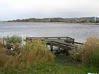 Castle Semple and Barr Lochs are SSSIs and Kilbirnie Loch is a Scottish Wildlife Trust designated LSNC (Local Site for Nature Conservation) in terms of the Ayrshire Local Biodiversity Action Plan (ALBAP) and in partnership with North Ayrshire Council.[19] High levels of invasive alien waterweed species, Canadian waterweed (Elodea canadensis) and Nuttall’s waterweed (Elodea nuttalli) if left unchecked, will continue to spread and overwhelm other native aquatic plants.[4] The loch's southern end is dominated by large areas of mown grass with mature grown bushes and wood copses. The western shore for the first 0.75 km or so is composed of planted willow with some older deciduous trees; round the loch into the very north-east corner, pastures surround the loch. Along the western part, the ground slopes quite steeply down to the loch. The northern shore itself is level and there are areas of marshy ground. The eastern side of the loch is a narrow strip of reedbed and bogbean grows in sheltered area.[27]