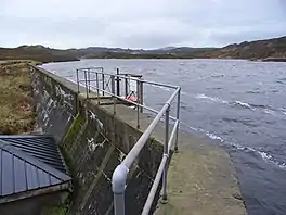 Kilduskland Reservoir is of the impounding variety and is located 2 kilometres west of Ardrishaig, supplying the village with its water supply. The concrete dam is 9 metres high and it was completed in 1906.