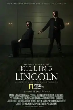 Killing Lincoln is an American television film inspired by the 2011 book of the same name by Bill O'Reilly and Martin Dugard. This two-hour political docudrama contains events surrounding the presidency and assassination of Abraham Lincoln. It was originally broadcast on National Geographic Channel on February 17, 2013. Narrated and hosted by American actor Tom Hanks, the film stars Billy Campbell as President Lincoln and Jesse Johnson as John Wilkes Booth. It was written and executive produced by Erik Jendresen (Band of Brothers), directed by Adrian Moat (Gettysburg), produced by Chris Cowen, Mark Herzog, Ridley Scott, Tony Scott, Mary Lisio, David Zucker, and Terri Weinberg.