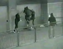 At 3.10am the group encountered Morley and his friend Alastair Whiteside sitting on a bench near London's Hungerford Bridge. O'Mahoney told Morley they were making a documentary on happy slapping and to "pose for the camera".[8] They proceeded to attack the pair and stole Whiteside's mobile phone. After stealing the phone they continued to attack Morley and Whiteside. Whiteside's witness testimony stated that the girl, O'Mahoney, finished Morley off by kicking him two or three times in the head, "like a football." After this attack the group continued to attack three more people.